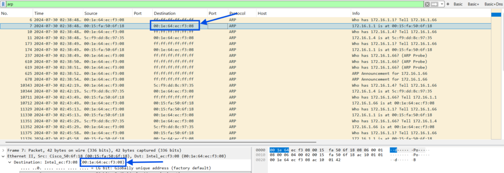 Los paquetes ARP muestran la relación entre una dirección IP y su dirección MAC.