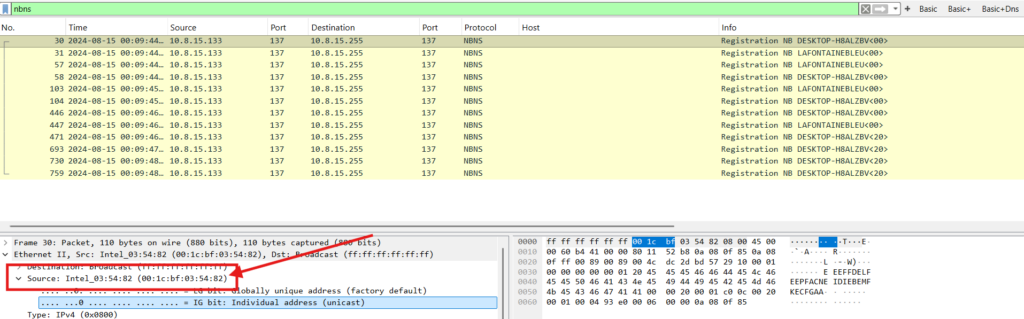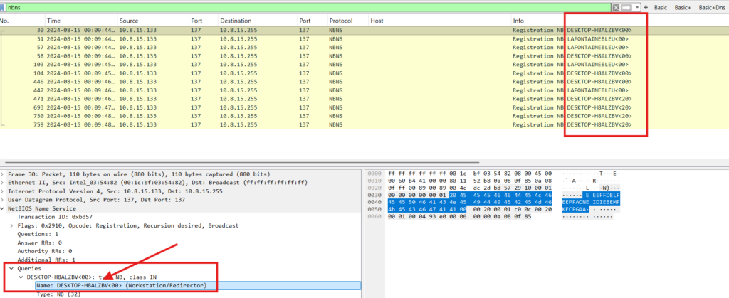 Filtra paquetes del protocolo NBNS (NetBIOS Name Service).