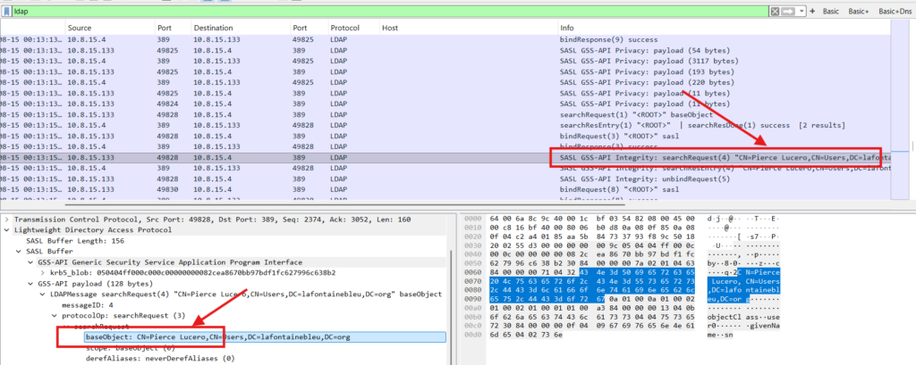 Muestra tráfico LDAP, usado para consultar información del Active Directory.