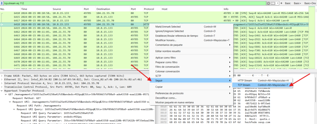 Filtra toda la actividad HTTP y TLS generada por la víctima.