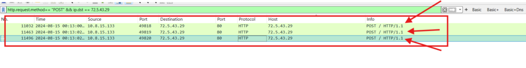 En este incidente, WarmCookie ingresó al sistema tras la descarga y ejecución de un archivo malicioso. Una vez activo, el malware inició conexiones repetidas mediante solicitudes HTTP POST hacia el servidor 72.5.43.29, lo que coincide con su comportamiento conocido de abrir un canal de comunicación con el C2. A través de este canal, el atacante puede obtener información del sistema comprometido, ejecutar comandos, desplegar payloads adicionales o preparar el entorno para etapas posteriores del ataque.